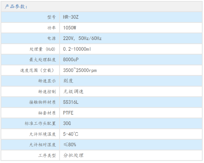 ● HR-30Z至尊版高剪切均质乳化机是专为样品均质乳化而设计一款机械设备,可配多种不同规格的工作头快速实现样品的分散、均质、乳化、悬浊、搅拌等,主要适用于中批量、中等黏度物料,以及含固液体的分散、乳化、均质、混合。本产品使用原装进口电机大大降低了仪器设备工作噪音,可以长时间工作。
